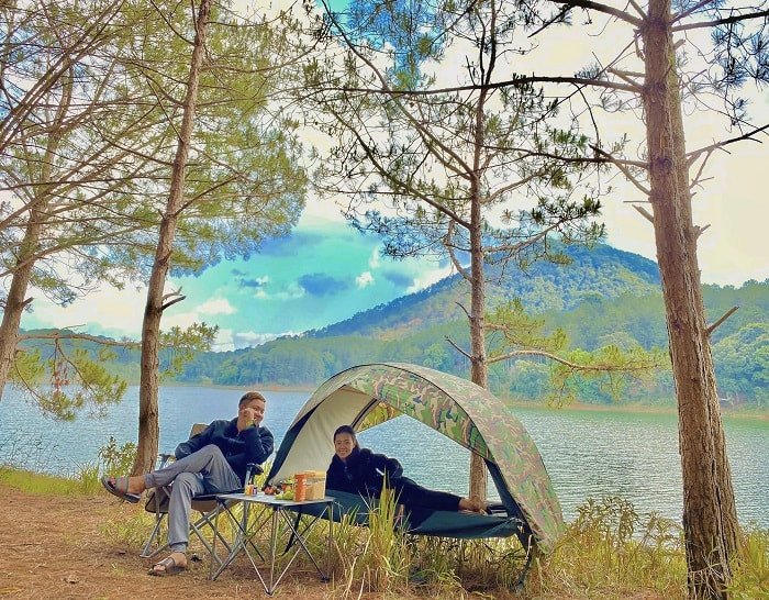 trại, câu cá, đốt lửa trại và thưởng thức những món đặc sản vùng miền vô cùng hấp