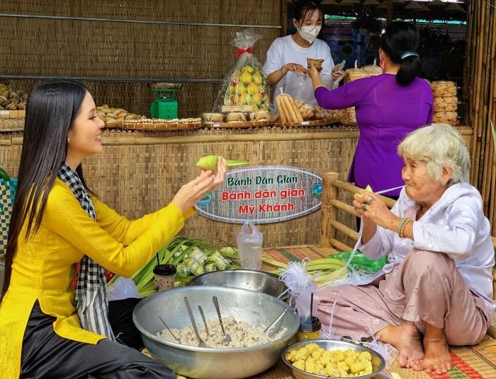 Phía sau khu nhà cổ, khu du lịch Mỹ Khánh Cần Thơ còn làng nghề truyền thống lưu giữ những đặc sản vùng đất phương Nam. Du khách sẽ được tận mắt chứng kiến các bước làm bánh tráng, hủ tiếu hay quy trình nấu rượu thơm ngon. Đây cũng sẽ là những món quà ý nghĩa để bạn thưởng thức hay mua mang về làm quà tặng những người thân yêu.