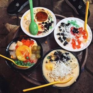 trong sẽ gồm có một viên kem, xôi cùng ngô ngọt, thạch màu sắc, dừa khô cùng với